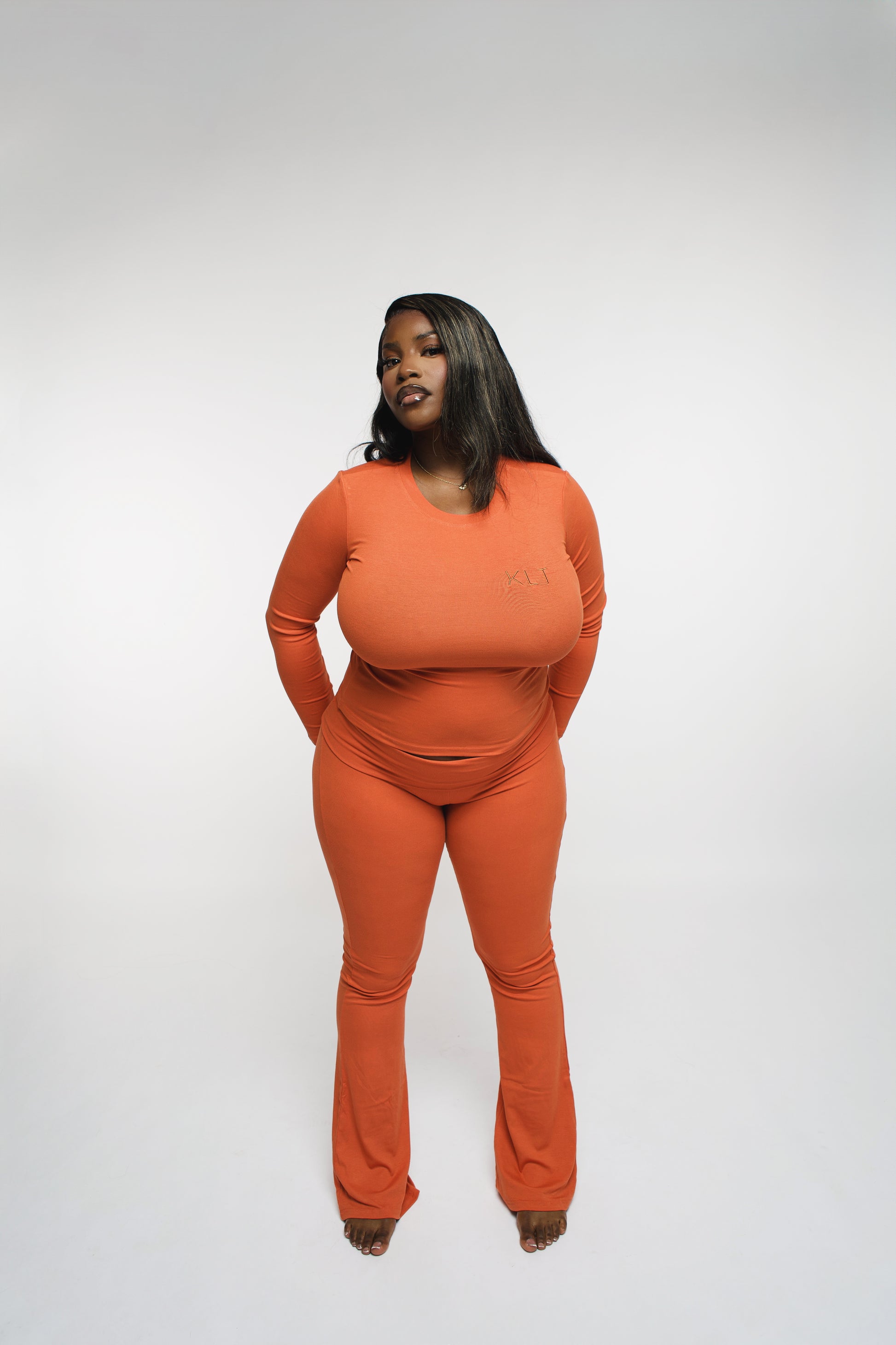 Le logo “KLT” ton sur ton placé discrètement à la taille complète ce look résolument tendance.