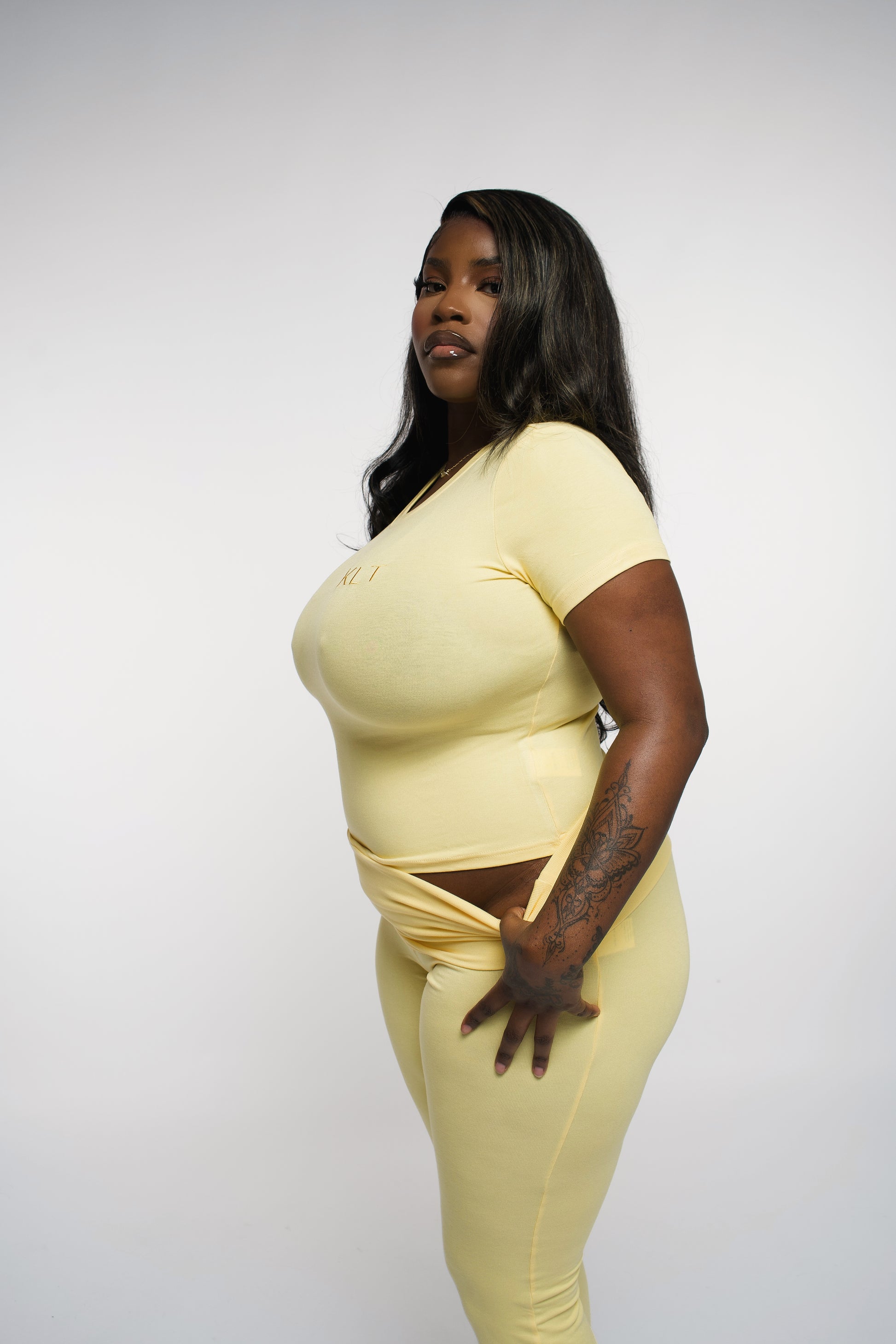 Conçu pour sublimer la silhouette tout en garantissant une liberté de mouvement optimale, il est orné du logo discret “KLT” côté cœur.